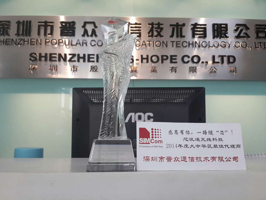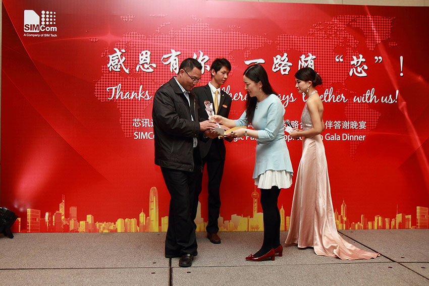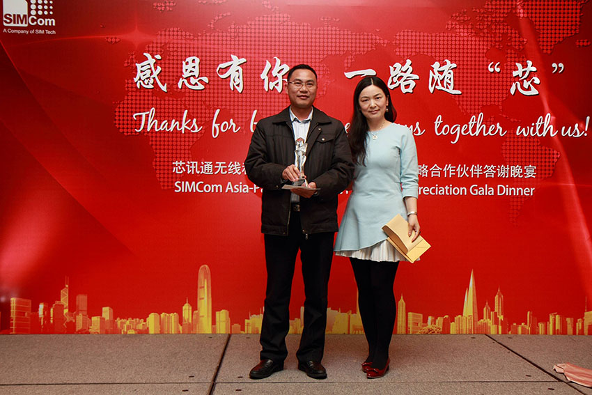 普众通信总经理吴树荣先生和SIMCOM总经理王钟香女士笑捧奖牌留影!