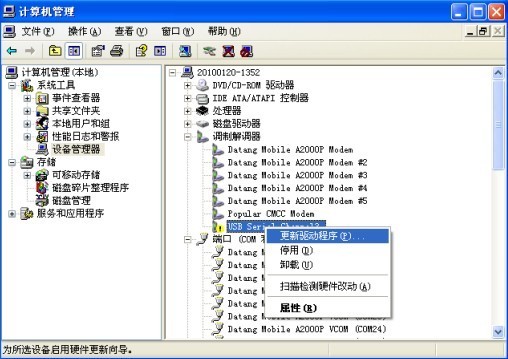 6、安装完后可以通过设备管理器检查是否安装成功,如没有安装成功会看到黄色的惊叹号或者问号,此时可鼠标右键点击更新驱动程序来完成安装,如下图,(红色框住区域安装完整即硬件驱动安装成功)